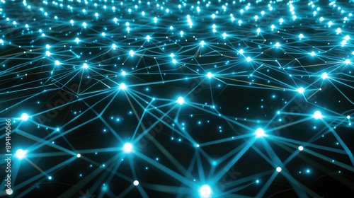 © KALEYA, Obraz premium Futuristic mesh grid with glowing nodes