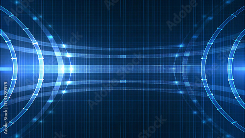 Obraz premium Futuristic Mesh Tunnel In Glowing Blue Neon Lights For Abstract Digital...