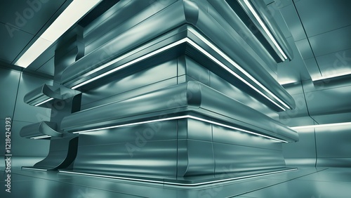 © Shehub, Obraz premium Futuristic Metal Structure Architectural Design, Modern Sci-fi Interior