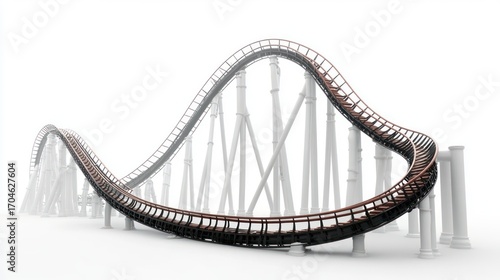 © btiger, Fototapeta premium Futuristic metallic roller coaster structure with smooth curves and multiple supporting pillars in a bright minimal setting