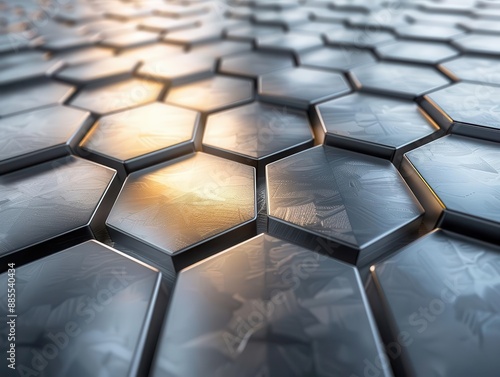 Obraz premium futuristic metallic surface with interconnected hexagons scifi inspired...