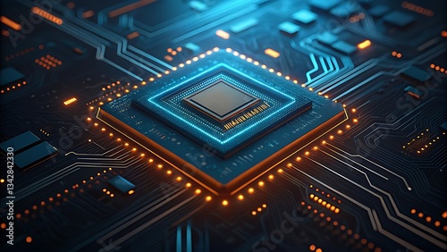 © Stocks Hub, Obraz premium Futuristic Microchip embedded,High-Tech circuit board, Advanced computing, AI technology, semiconductor innovation. highlights driving digital transformation, automation,next-generation computing