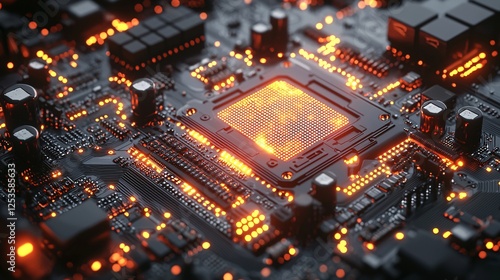 © Thanayut, Obraz premium futuristic microchip technology with illuminated circuitry