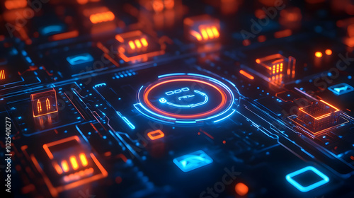 Fototapeta premium Futuristic Microchip with Glowing Circuits in an Abstract Technological Design