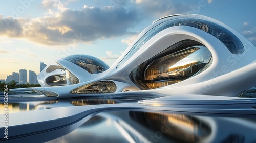 Fototapeta premium Futuristic Modern Architecture with Unique Curves and Reflection