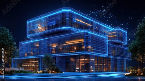 Fototapeta premium Futuristic modern house exterior at night