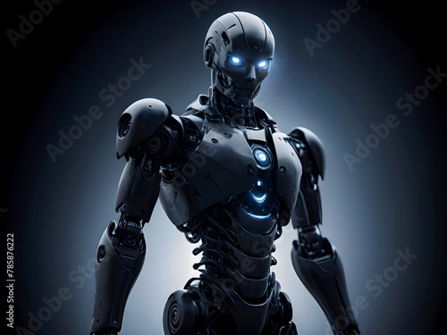 Fototapeta premium Futuristic Modern Humanoid Robot in a Dark Room, Artificial Intelligence with robot engineering
