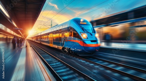 © neirfy, Naklejka premium Futuristic modern train of non existent design