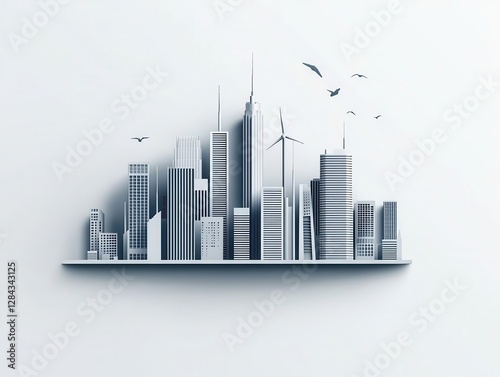 © Green Creator, Fototapeta premium Futuristic monochrome vector of a city using 100 renewable energy, sustainable urban design