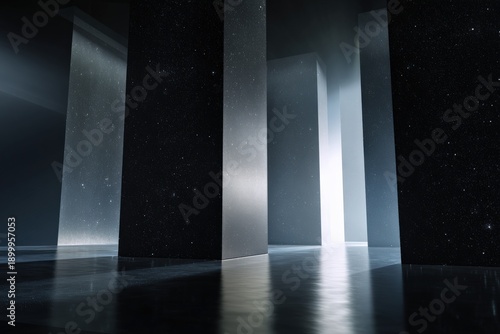 Obraz premium Futuristic monolithic structures in a mystical, starry environment