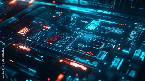 © Amien19, Obraz premium Futuristic motherboard with intricate network connections and vibrant illumination