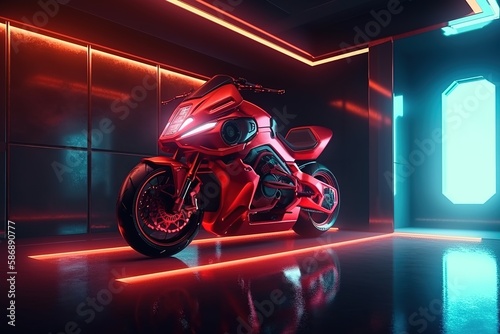 Obraz premium Futuristic motorcycle concept design, image by generative AI