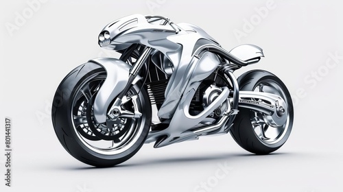 © Bijac, Fototapeta premium futuristic motorcycle concept sleek silver design on white background 3d render
