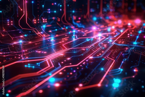 © ItziesDesign, Fototapeta premium Futuristic neon background with neon lines and circuits