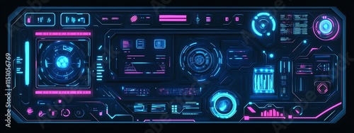 Fototapeta premium Futuristic neon blue and pink digital interface dashboard.