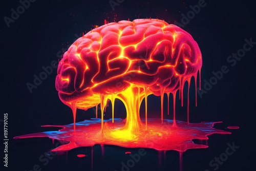 Fototapeta premium Futuristic Neon Brain with Melting Glowing Effect in Dark Background