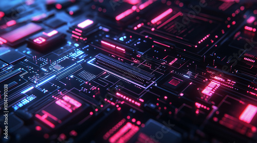 Obraz premium Futuristic Neon Circuit Board with Glowing Patterns