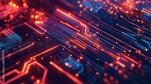 Obraz premium Futuristic Neon Circuit Board with Glowing Patterns