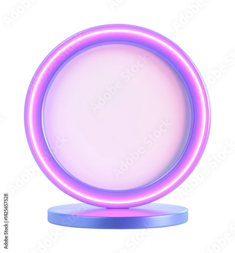 © Mr. Stocker, Fototapeta premium Futuristic neon circular display with glowing led lights, cut out - stock png.