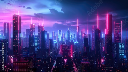 Fototapeta premium Futuristic Neon Cityscape at Dusk