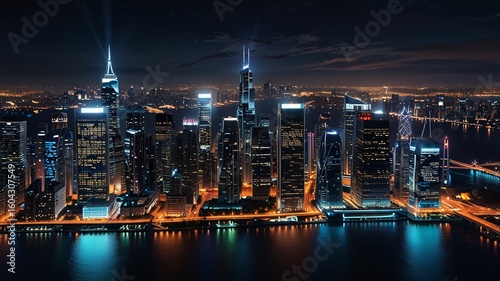 Naklejka premium Futuristic Neon Cityscape at Night with Glowing Skyscrapers V2