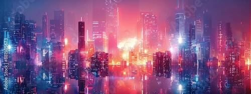 © kvladimirv, Fototapeta premium Futuristic Neon Cityscape at Night with Skyscrapers and Vibrant Lights