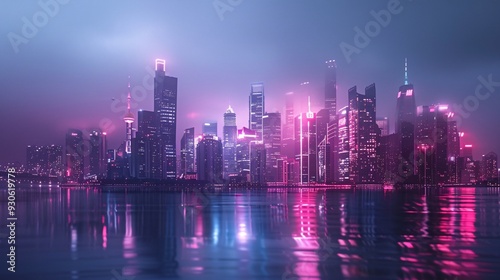 Fototapeta premium Futuristic Neon Cityscape with Reflections