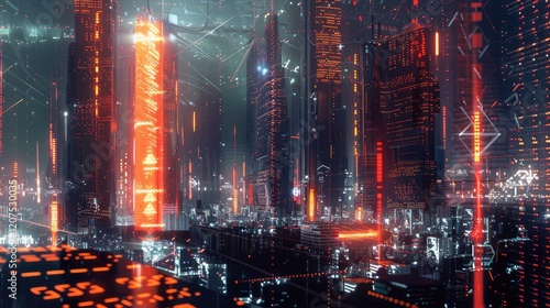 Fototapeta premium Futuristic Neon Cityscape with Tall Skyscrapers