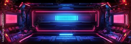 Obraz premium Futuristic neon corridor with glowing lights in vibrant colors creating a...