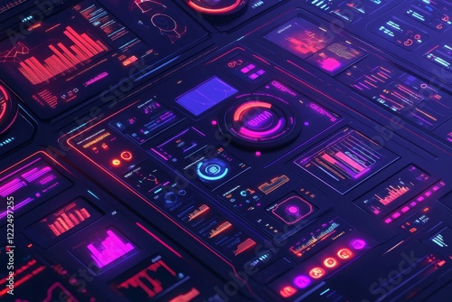© Elen Mosq, Obraz premium Futuristic Neon Cyberpunk Interface Control Panel Display