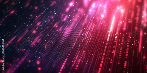 Fototapeta premium Futuristic Neon Data Stream in Motion Abstract visualization of fast-moving neon data streams in vibrant pink and blue tones.