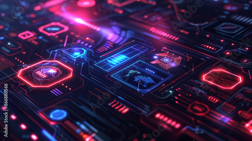 © sabyna75, Fototapeta premium Futuristic Neon Digital Circuit Board Interface