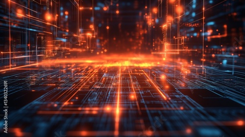 Obraz premium Futuristic Neon Digital Network: Abstract Sci-Fi Computer-Generated 3D Visual...