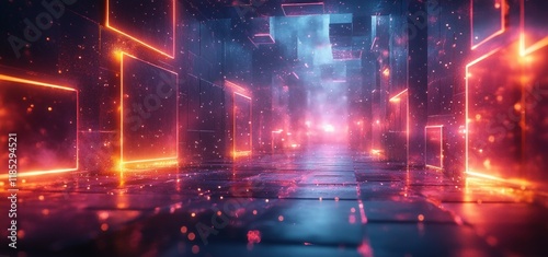 Obraz premium Futuristic Neon Geometric Abstract 3D Background with Glowing Patterns and...