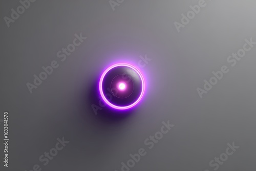 Obraz premium Futuristic Neon Glowing Control Button with Purple Light on Grey Background -...