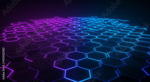 © WAFIQ, Fototapeta premium Futuristic Neon Hexagonal Grid Seamless Pattern with Abstract Lighting