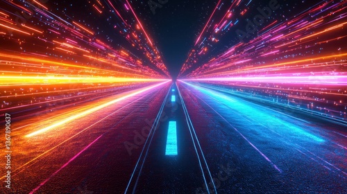 © SAQUEEN, Obraz premium Futuristic neon highway