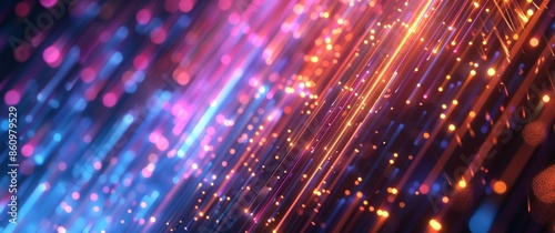 © nicole, Fototapeta premium Futuristic Neon: Immersive 3D Render with Luminous Ascending Lines for a Vibrant Wallpaper
