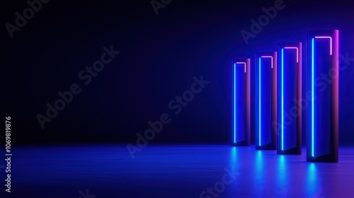 Obraz premium Futuristic Neon Light Columns Illuminating a Dark Space Environment
