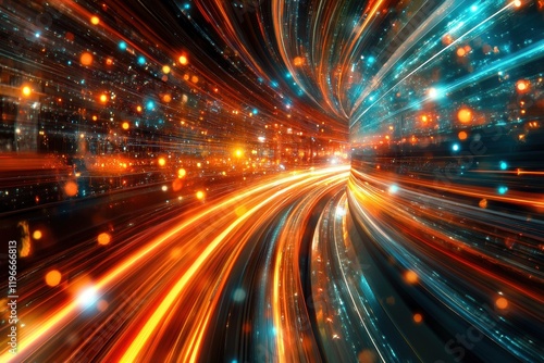 © Sunshine, Fototapeta premium Futuristic Neon Light Trails in a Dynamic Abstract Background with Vibrant Colors and Motion Blur