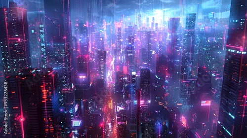 Fototapeta premium Futuristic Neon Lit Metropolis A Visionary Digital Art Concept of Advanced...