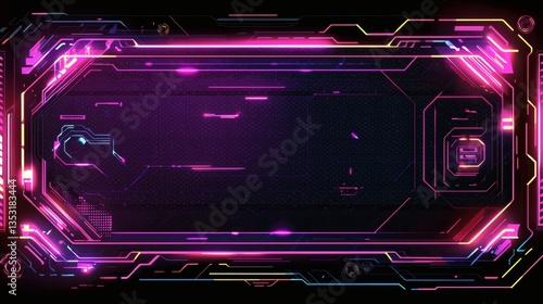 © parinja, Obraz premium Futuristic Neon Technology Background with Circuit Patterns and Glow