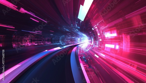 © vectorartificer, Obraz premium Futuristic Neon Tunnel Speed Data Technology Light Trails