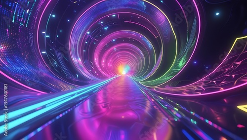 Naklejka premium Futuristic Neon Tunnel with Vibrant Lights and Sci-Fi Cyberpunk Aesthetic