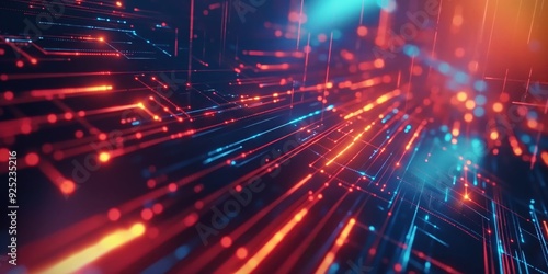 © gustav, Obraz premium Futuristic Neon Tunnel with Vibrant Lights created by ai