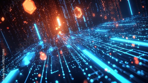 Obraz premium Futuristic network action digital realm abstract visuals cyber environment...