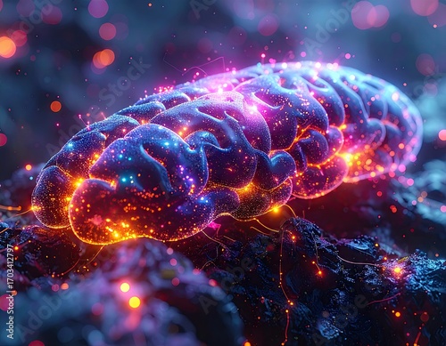 © fina, Obraz premium Futuristic Neural Implant Glowing Synapse Network
