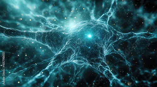© Julia, Fototapeta premium Futuristic Neural Network Visualization: Abstract Digital Representation of a Neuron in a High-Tech, Sci-Fi Style