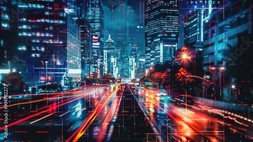 Naklejka premium Futuristic Night Cityscape with Motion Blur