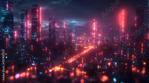 Obraz premium Futuristic Night Cityscape With Neon Lights